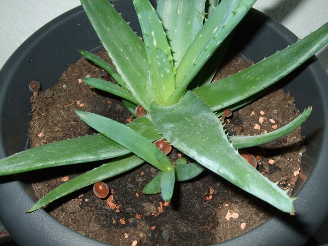 Ich habe drei weitere Beobachtungen gemacht: Auf der einen Blumentopfhälfte entwickeln sich die Pilze bzw. deren Hüte nur bis zum halbrunden Stadium und klappen nicht aus. Desweiteren sehen einige der größeren, "ausgeklappten" Hüte ein bisschen angefressen aus -> siehe Fotos. Und meine letzte Beobachtung: Ich habe mal an dem für die Heizung gepflückten Pilz geschnuppert und er riecht ganz normal pilzig