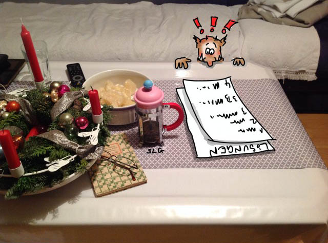 Ob das das Rätsels Lösung ist? Oder du einfach etwas zu viel Tee, gar von den kleinen blauen Pilzen genascht hast? Dabei hat die Adventszeit noch nicht einmal angefangen...