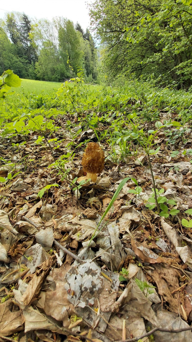 Anders schaut es bei den Speisemorcheln aus, sofern man in der Erntezeit jeden dritten Tag bekannte Gebiete ansteuert. In Auen mittlerweile sinnlos, da liegen die Eschen kreuz und quer. Voriges Jahr habe ich eine neue Stelle am Waldrand gefunden, war aber zu spät dran,