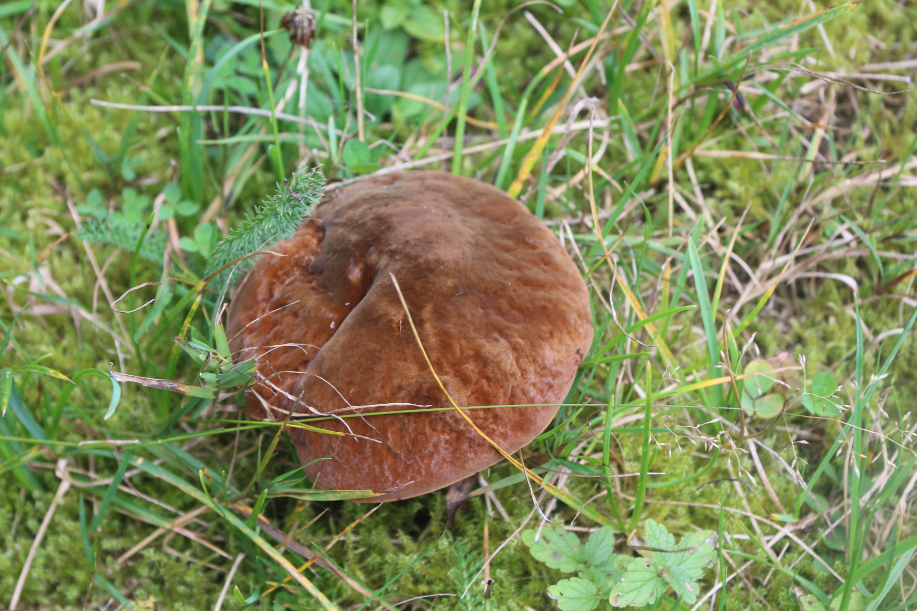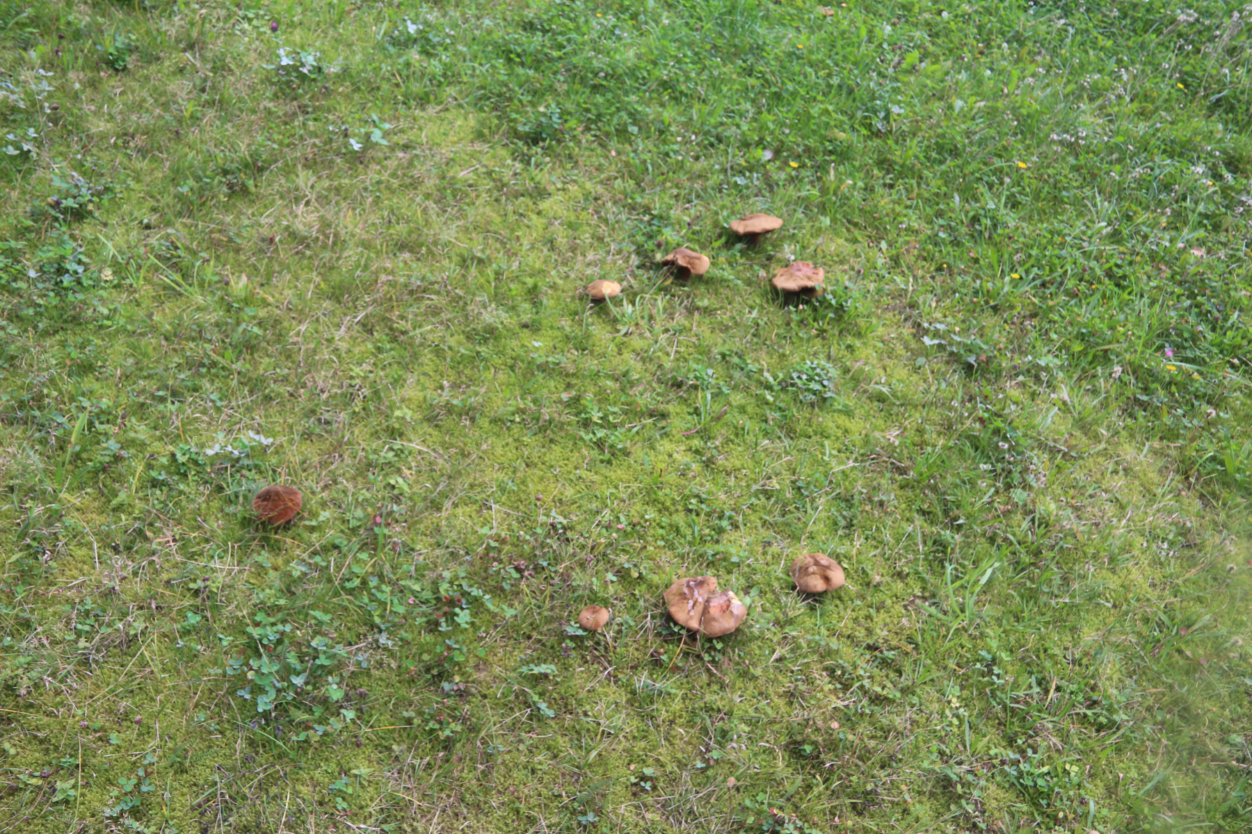 Allerdings konnte ich die Sporenfarbe am Objektträger nicht eindeutig beurteilen, dafür waren es zu wenige, die Schicht nicht dick genug. Von oben betrachtet weis, schräg gehalten war ein sehr schwacher Braunton zu erahnen. Reicht nicht für eine klare Aussage. Dieser Zettel diente als Unterlage für den OT, die braune Verfärbung darauf hat der FK generiert. Könnte allerdings auch durch die austretende Flüssigkeit verursacht worden sein.