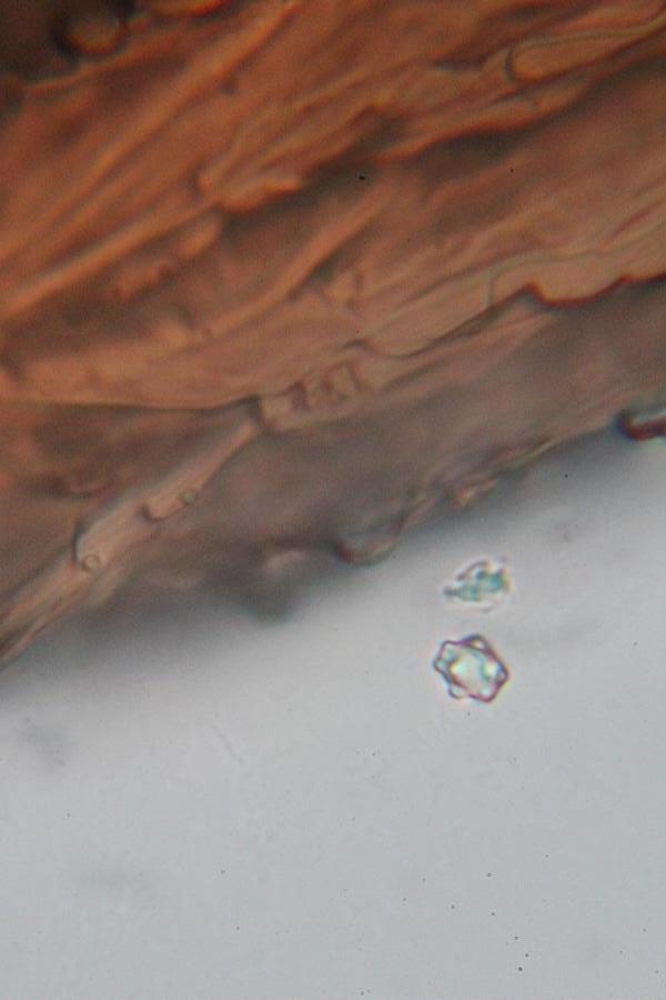 Irmgard hat sich selbstverständlich auch mehrere angesehen, das sind Sporen vom vorgelegten Pilze. In der Nähe standen keine weiteren Stachelinge, der andere Fund stammt nicht aus diesem Bereich. An den Sporen gibt es nix zu deuteln, ich habe nachmikroskopiert und weitere gefunden,