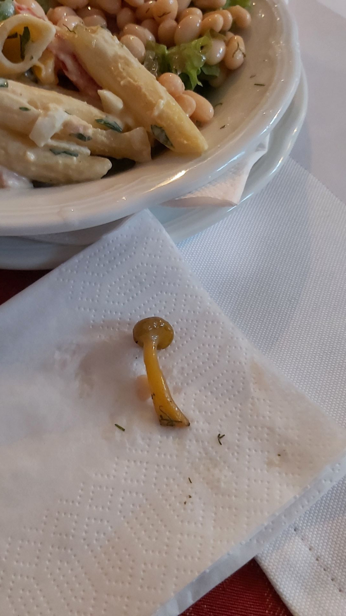 da kann die Köchin nix dafür; die Pilze haben wir angeschleppt, sie hat's nur verkocht. Und den Salat damit drapiert, mit den kleinen Trompetenpfifferlingen,