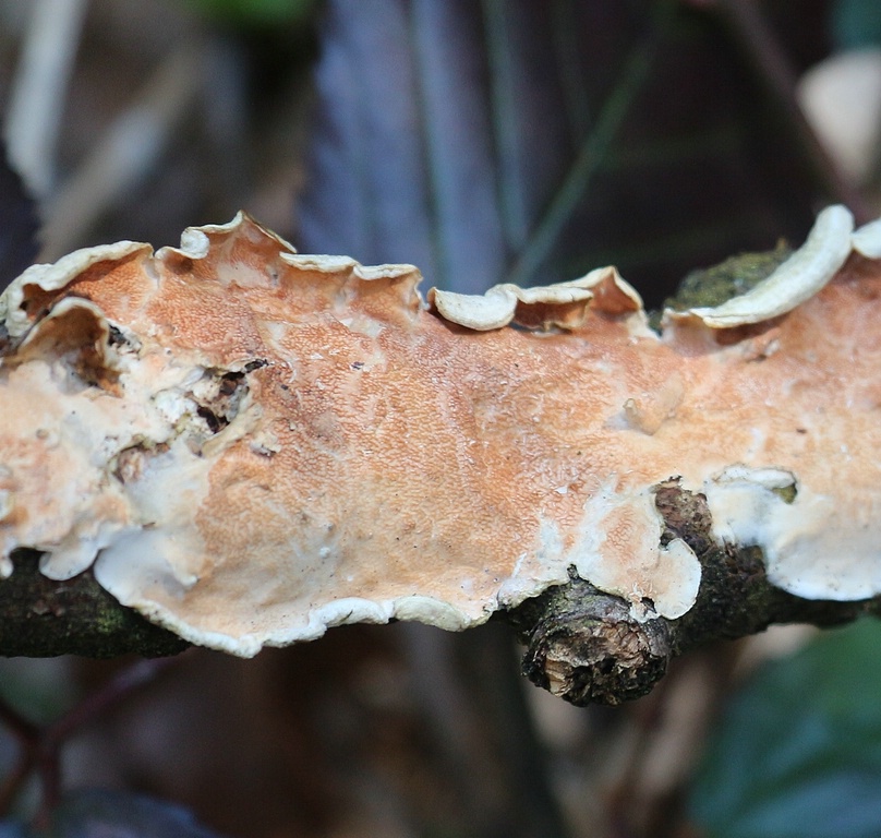 Ein paar Meter davon entfernt Byssomerulius corium, Leder-häutiger Fältling,