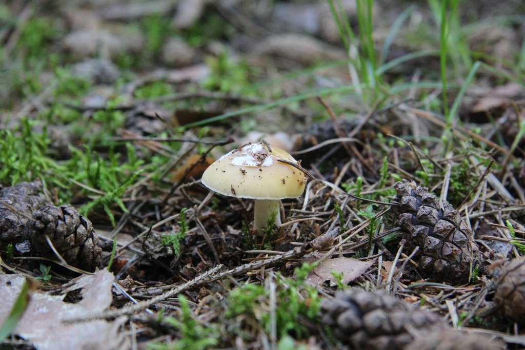 Graue Wulstlinge, Amanita exelsa, gab es auch, sind im Wald geblieben