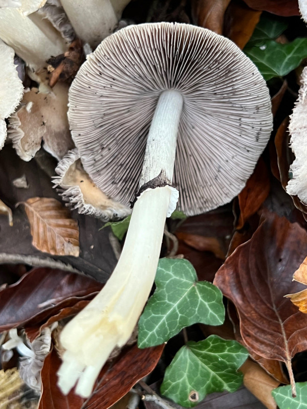 Nr. 3 und 4 (ich nehme an, es ist derselbe Pilz) kommt der Laubwald-Tigerritterling (Tricholoma filamentosum) in Betracht. Man müsste den Pilz durchschneiden und riechen, ob Mehlgeruch vorhanden ist. Beim Aussporen sollte weißes Sporenpulver herauskommen.