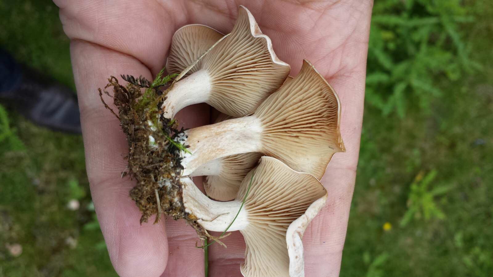 1. Ockerbrauner Trichterling. Aufgenommen an 2 verschiedenen Standorten.