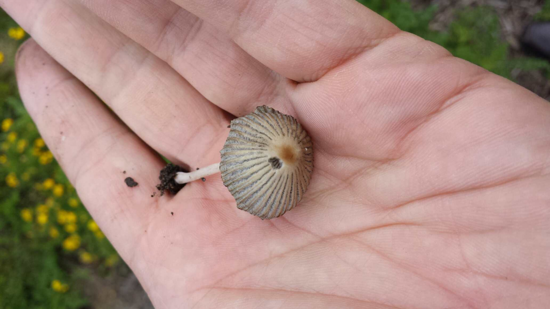 1. Tintling auf wildwucherndem Grasland. Kleines Zerbrechliches Pilzchen. Evtl. Der Gemeine Scheibentintling.