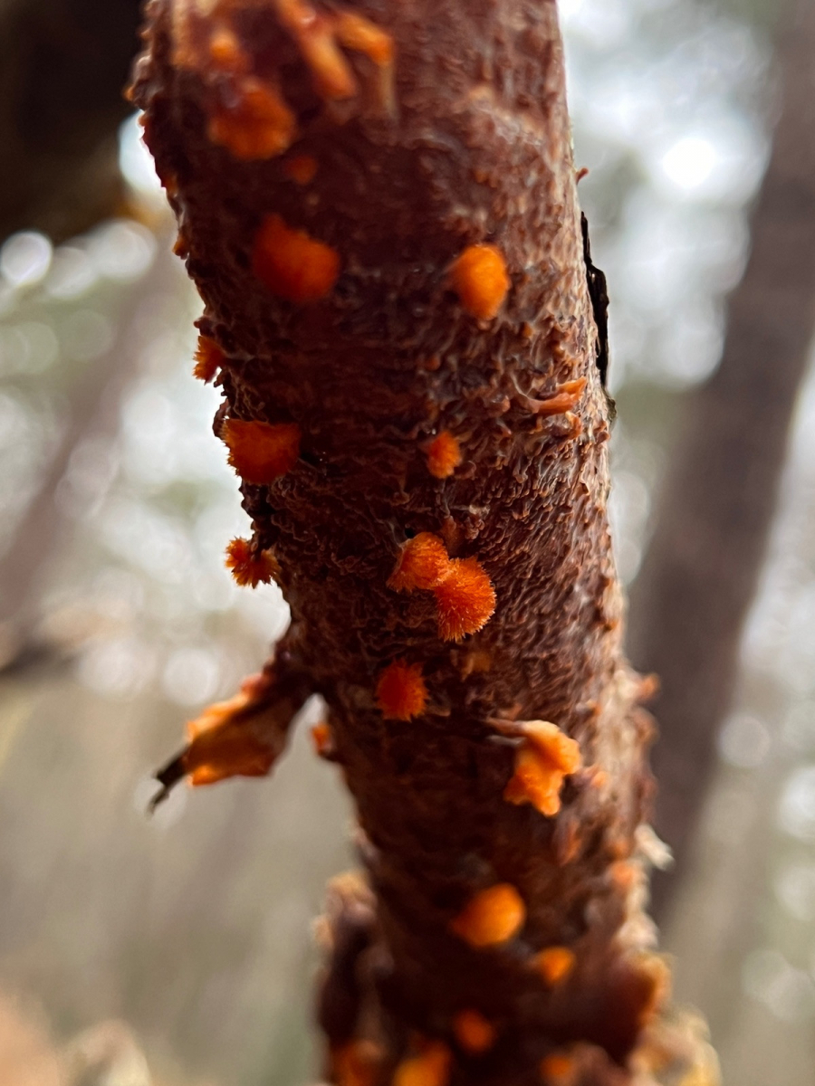 3) Unbekannt mit eigentümlichen Geruch wuchs truppweise an Holz
