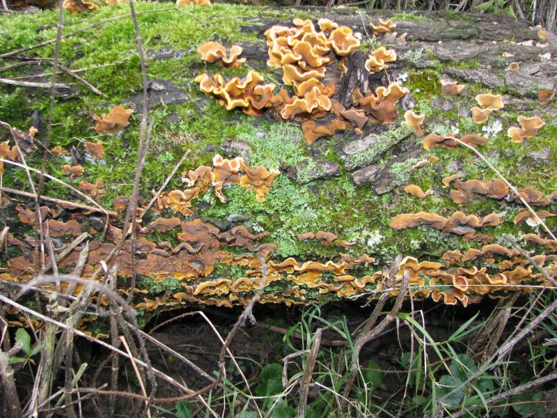 Langzeitbeobachtung (hüstel) is nich. Der Stumpf wurde gestern abgesägt. Nicht aus Ordnungsfimmel (der liegt mir fern, nicht nur im Garten), sondern aus einem anderen Grund: seit knapp 10 Jahren versuche ich, die Insekten an –žmeinem–œ Hausberg, dem Stux, zu erfassen, Schwerpunkt Schmetterlinge (kann man auf meiner HP nachlesen). Nun gibt es viele Kleinschmetterlinge, meist aus der Familie der Echten Motten (Tineidae), die als Raupe in Baumpilzen oder der Holzschicht direkt darunter leben (sollen). Da ist Vieles noch unbekannt. Und ich möchte nun halt feststellen, welche Falter aus welchen Pilzen schlüpfen. Dazu habe ich den Stumpf abgesägt, in zwei Teile zersägt und in eine Box ins Haus geholt. In der Wärme sollte eigentlich in etwa 1 Monat die ersten Falter schlüpfen.