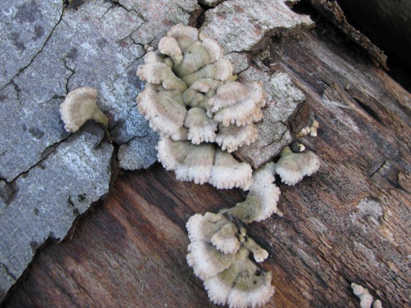 hier tappe ich völlig im Dunkeln, etwas Passendes habe ich nicht gefunden. Diesen Baumpilz habe ich auf einer durch Friederike gefällten, schon vorher abgestorbenen Rotbuche gefunden, der dort auf der Rinde ein größeres Areal besiedelte. Weiß jemand was Genaueres?