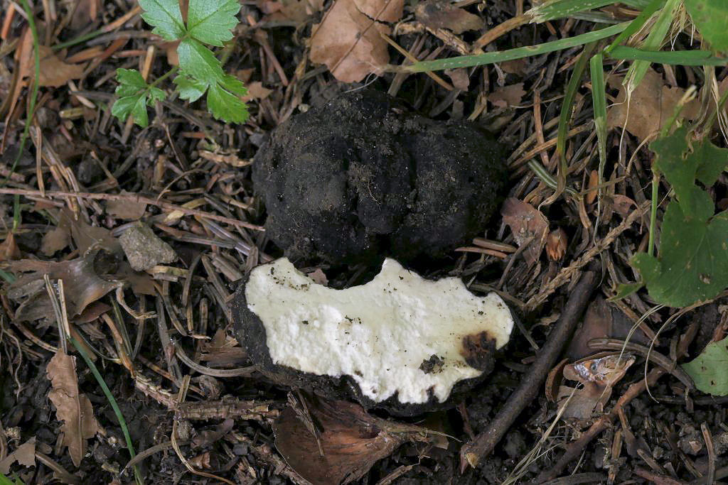 im Allgäu habe ich ich letzte Woche auf ca. 1000 Höhenmetern dieses trüffelige Gebilde gefunden. Baumbestand war Fichte und Weißtanne mit wenigen Laubbäumen durchsetzt. Auffällig war, dass es halb in der Erde steckte und schon angefressen war, so dass man es überhaupt entdecken konnte.