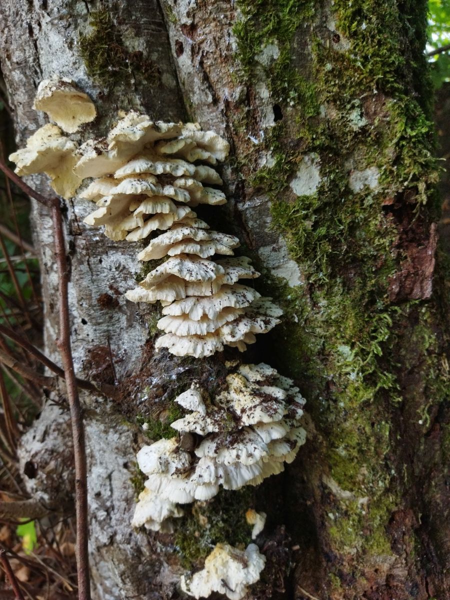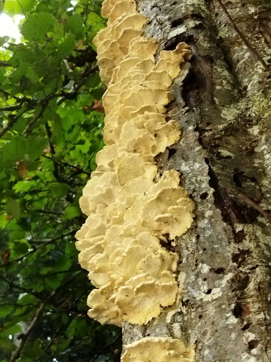 im Allgäu-Urlaub habe ich in einer Klamm an Grau-Erle (Alnus incana) folgendes Teil gefunden, das makroskopisch und haptisch erstmal wie ein zu klein geratener, ausgeblasster Schwefelporling daherkommt. Kann aber nicht sein bei langelliptischen, leicht allantoiden Sporen mit 5,5-7µ Länge. Das schließt auch die andere Idee, Oxyporus populinus aus.