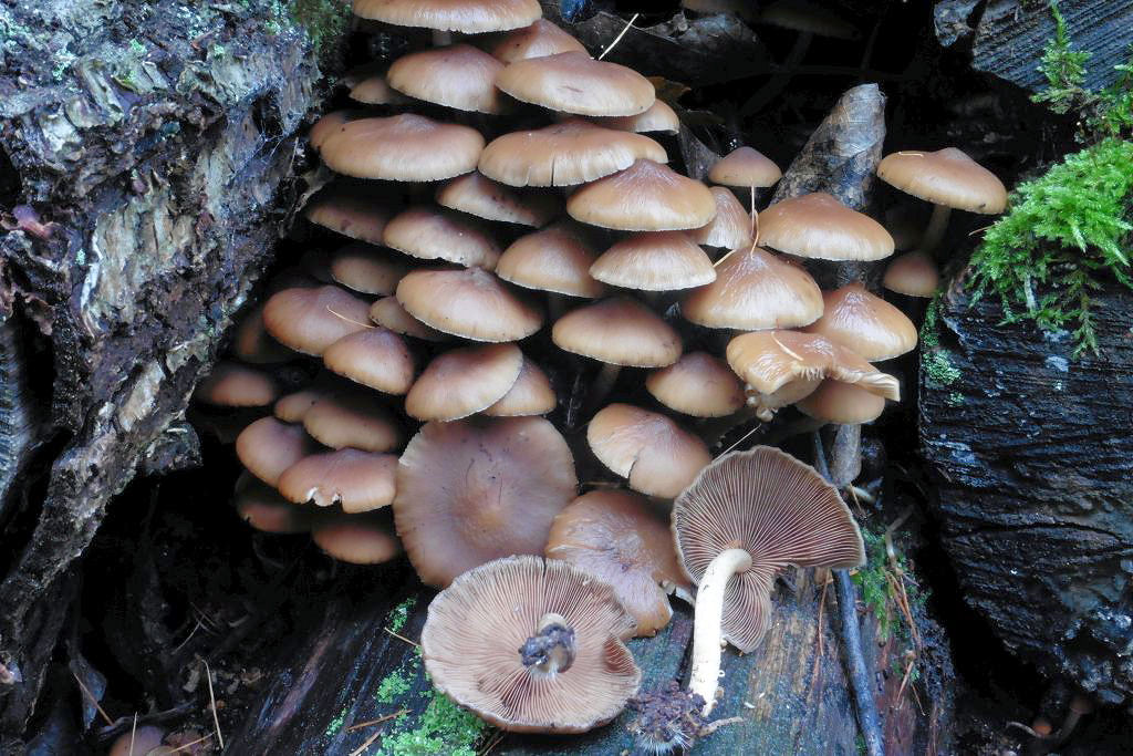 Uiuiui, ziemlich eindeutig ein Hallimasch. Der Spitzschuppige Stachelschirmling hat ganz engstehende Lamellen und eine ausladenden lappigen Ring (ähnlich wie beim zweiten Pilz).