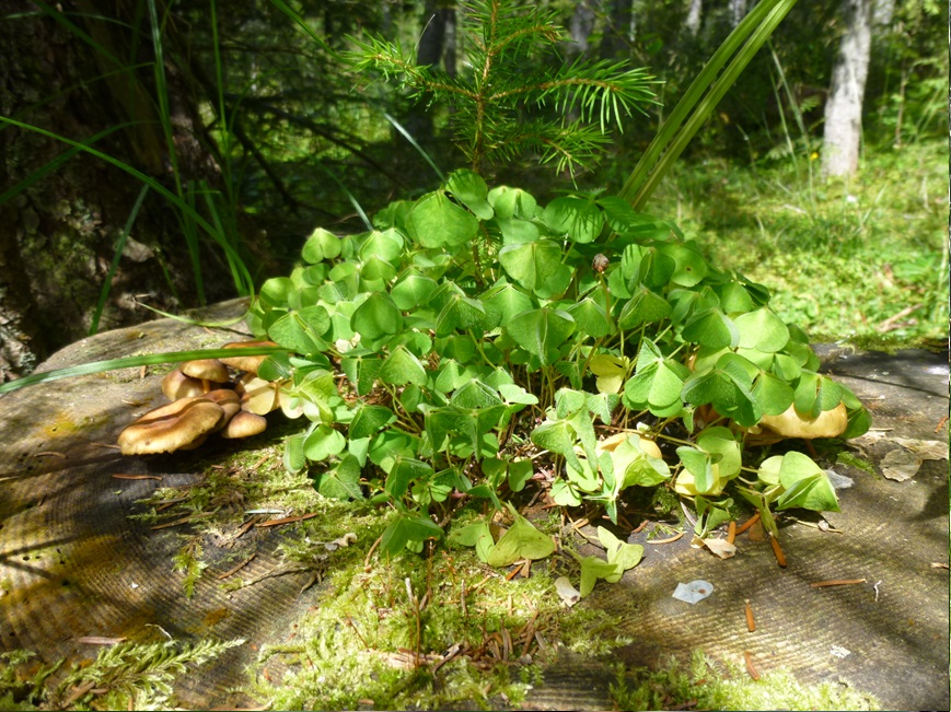 Erstmal zwei Glücksbringer, die sich einen Baumstumpf teilen: