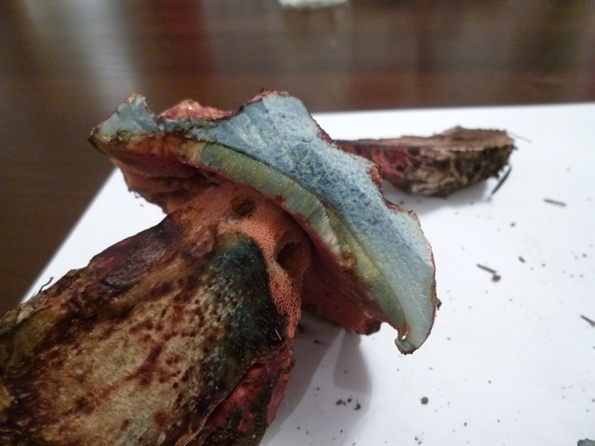 Schnittstelle am Stiel bei FK ganz rechts bereits drei Stunden alt (blaute nach dem Anschnitt, allerdings erst nach einiger Zeit):