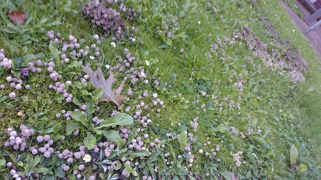 wollte ma horchen, ob mir jemand sagen kann um welche kleinen Kerle es sich hier handelt. Mit so kleinen Pilzen kenn ich mich gar nich aus. Gerade in Nachbars Vorgarten entdeckt(denke ich habe an der Stelle mal abgestorbene Baumreste gesehn). Schaut einfach mal über die Bilder drüber ..