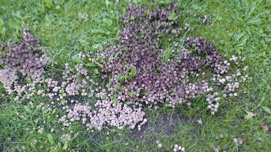 Ja und fast schon zu Hause stand im Vorgarten mitten auf ner Wiese dieses Kerlchen. Kein Baum weit und breit in Sicht. Hätte vermutet es handelt sich um einen jungen Riesenporling, aber so ohne Baum, recht merkwürdig. Fasst sich, ja ich würd sagen fast wachsartig an.