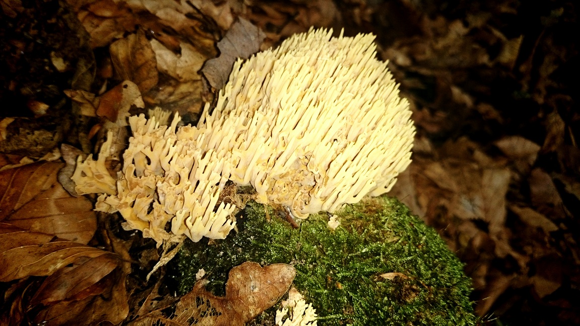 alles in allem aber doch eine bunte Auswahl von Ziegenlippe und Goldröhrling über Filzröhrlinge und MaronenAuf dem Rückweg fanden wir noch diese (zierliche?) Koralle an einem Baumstumpf