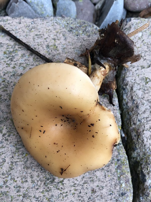 Beim Fuchsigen gibt es für mich noch zu viele Verwechslungspartner, aber vielleicht könnt ihr mir ja helfen. Die dunklen Punkte auf dem Hut sind Erdreste. Hatte gerade keinen Pinsel zur Hand.