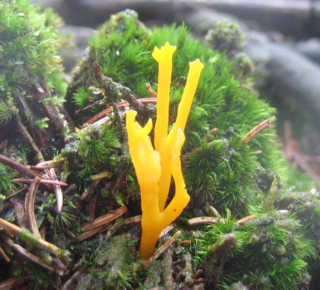 Überall in Massen wie immer der Klebrige Hörnling (Calocera viscosa