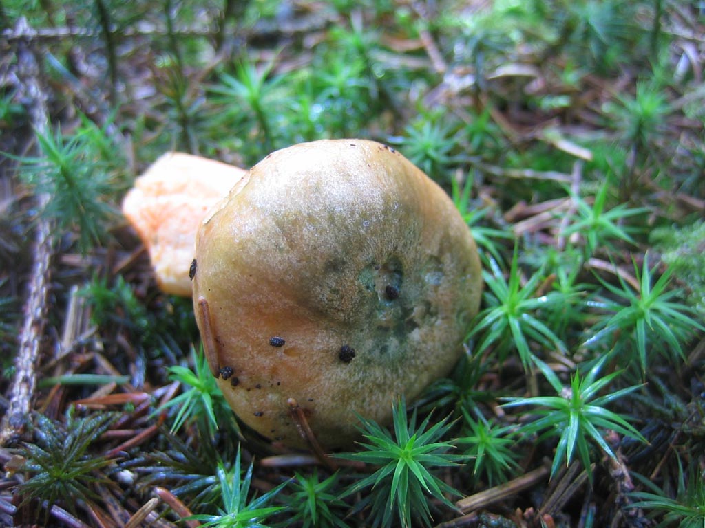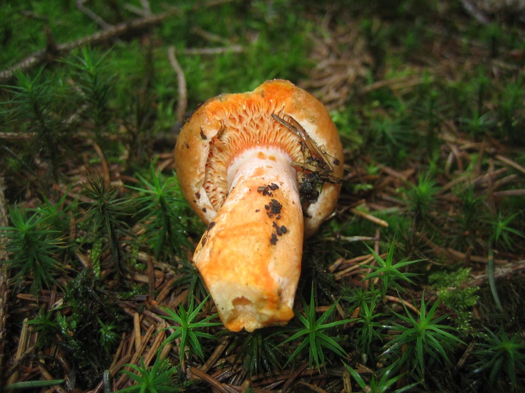 Reizker unter Fichte. Milch orange, später grün. Druckstellen grün. Fichtenreizker (Lactarius deterrimus)?: