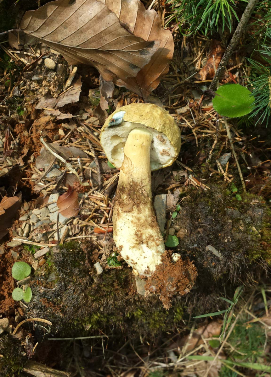 Ein Bild vom Schnitt habe ich leider nicht, aber das Blau kommt ziemlich nah an die Abbildungen des Kornblumenröhrlings heran. Habe bislang von so einem Pilz noch nicht gehört und auch in meinem Pilzbuch steht er nicht. Scheint wirklich sehr selten zu sein.