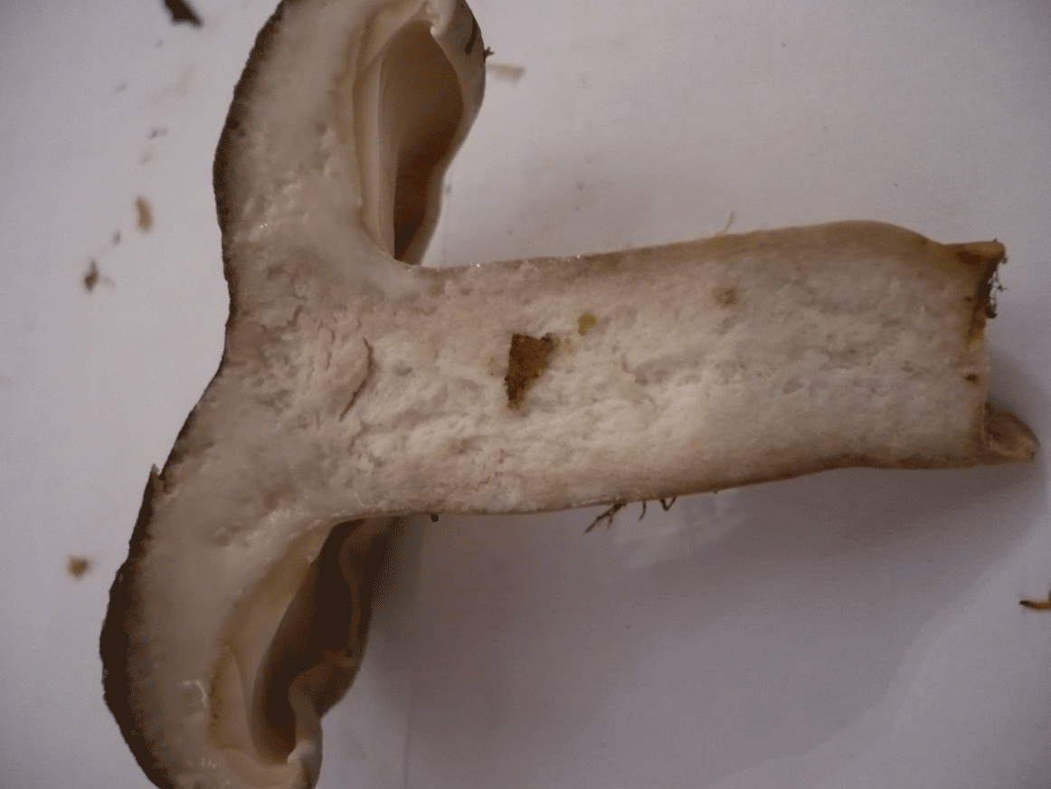 Die kleinen braunen Teilchen am Stil (weiss leider nicht wie man die nennt?!) sind weiter nach oben zu den Lamellen hin nach unten runter leicht eingerollt. Siehe Fotos! Ich hoffe ihr könnte mir sagen was ihr meint, welcher Pilz dieser sein könnte?
