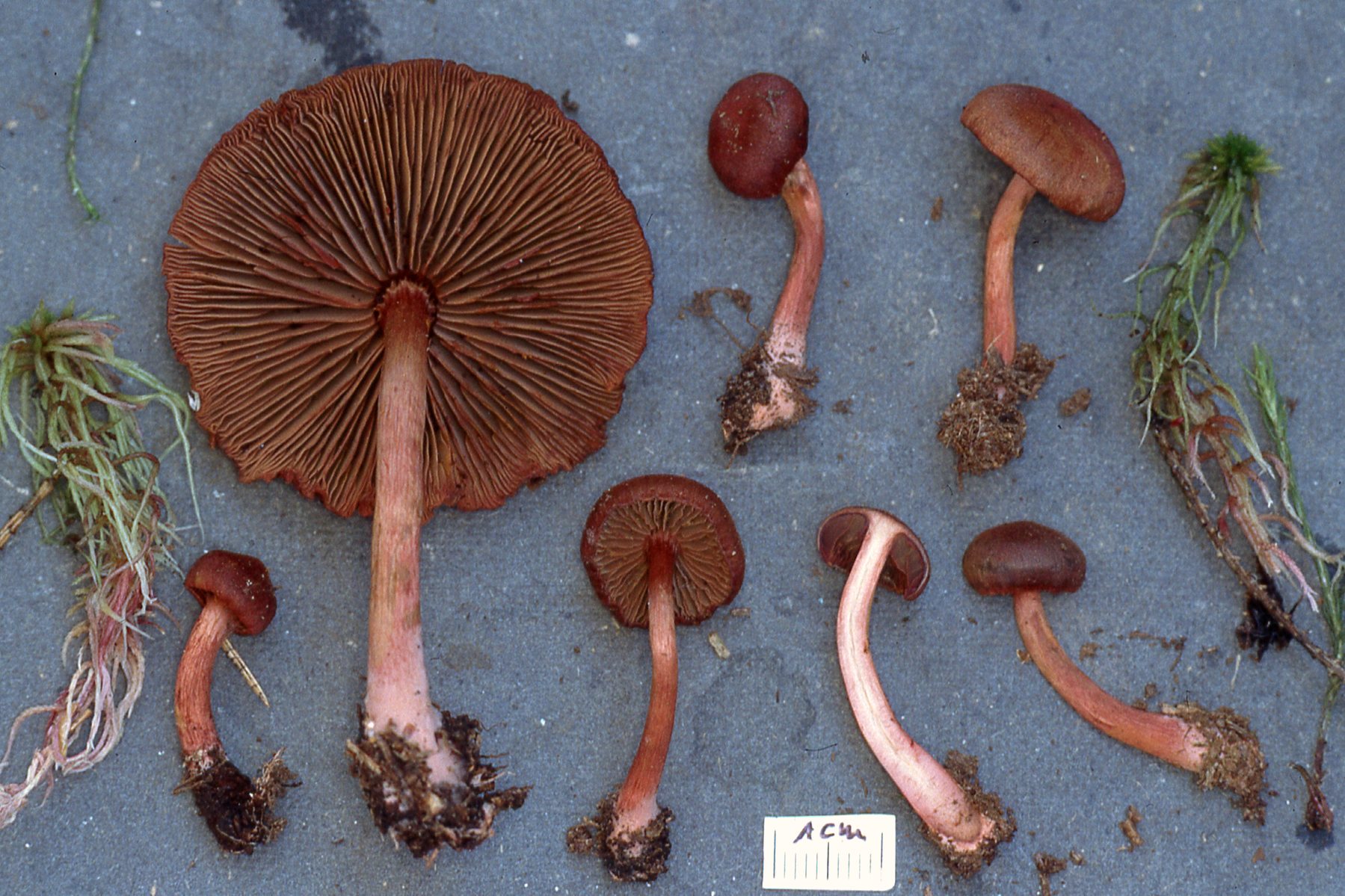 Eine Dermocybe-Kollektion vom 23. Juni 1994 aus einem Fichtenforst mit Sphagnum (By. Wald), die ich damals als C. sanguineus bestimmt hatte, zeigte Unterschiede zu dieser Art: Das Stielfleisch ist weißlich, der Basalfilz rosa und die Hut- und Stielfarben sind weniger intensiv karminrot als bei C. sanguineus. Dies entspricht den Angaben in der Literatur zu C. sanguineus var. vitiosus (z. B. Moser 1983, „Funga Nordica“ 2012, Ludwig 2017), bzw. jetzt lt. Mycobank.org Cortinarius vitiosus (M. M. Moser) Niskanen, Kytöv., Liimat. & S. Laine 2012.
