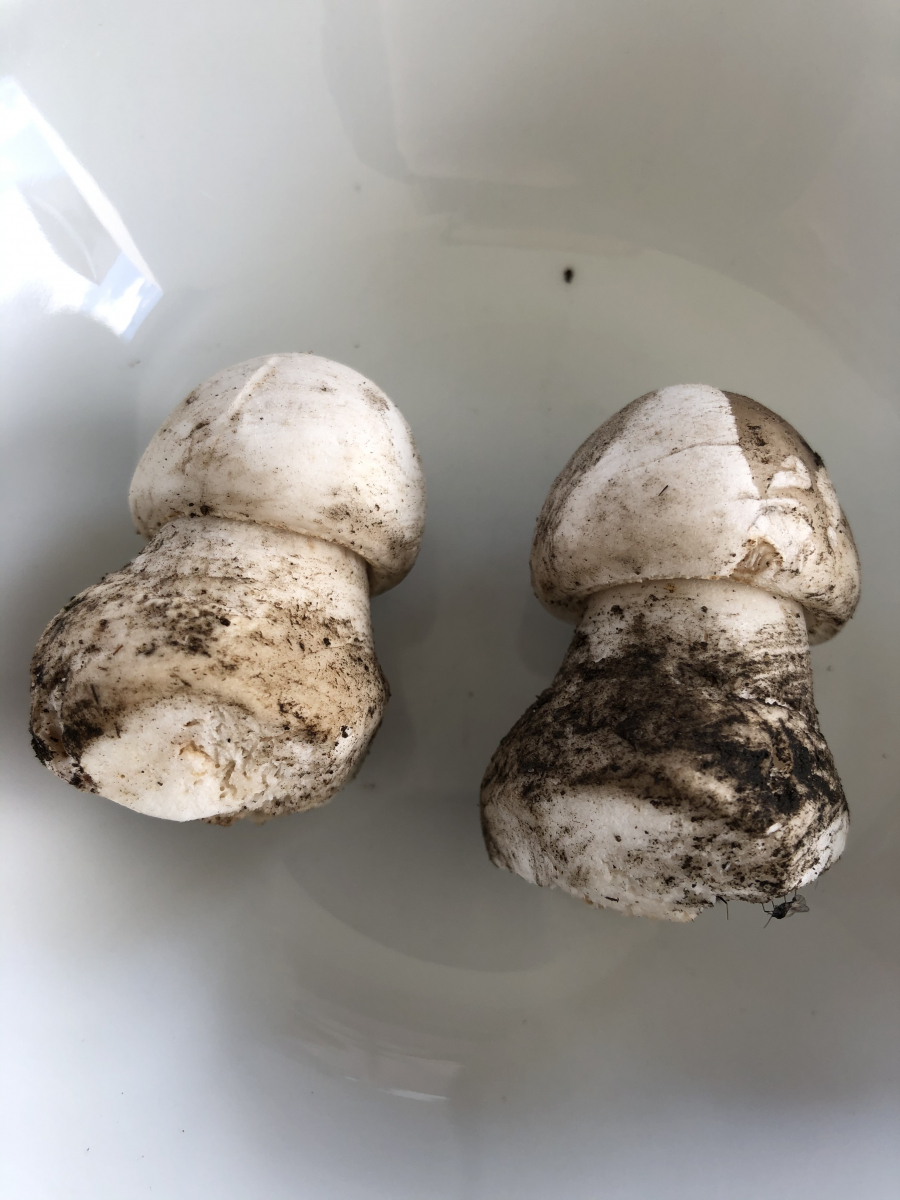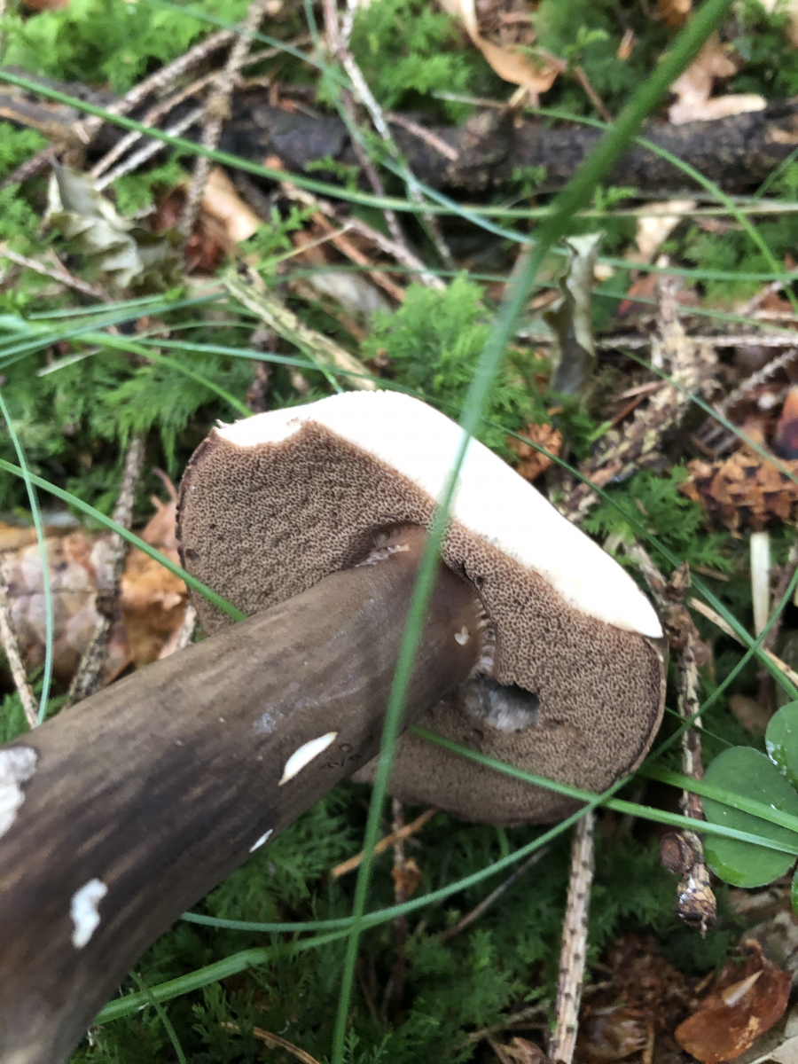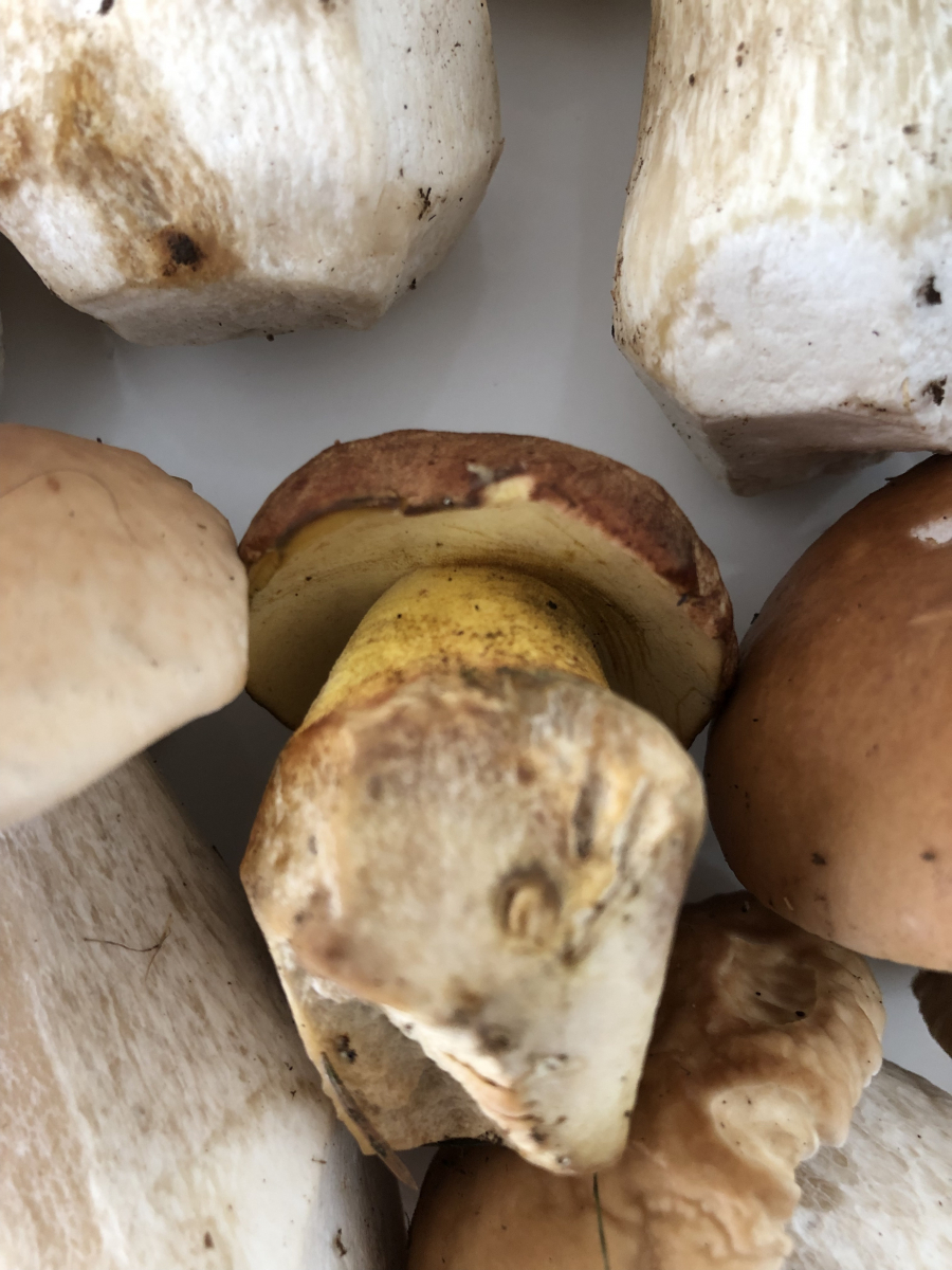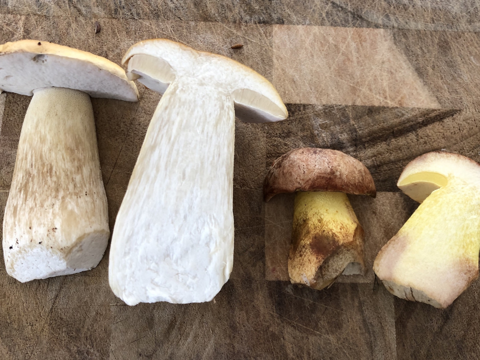 Allerdings habe ich beim Putzen gesehen, dass die Röhren der Kappen von zwei Pilzen eher gelblich als weiss sind. (siehe Vergleichsbild)