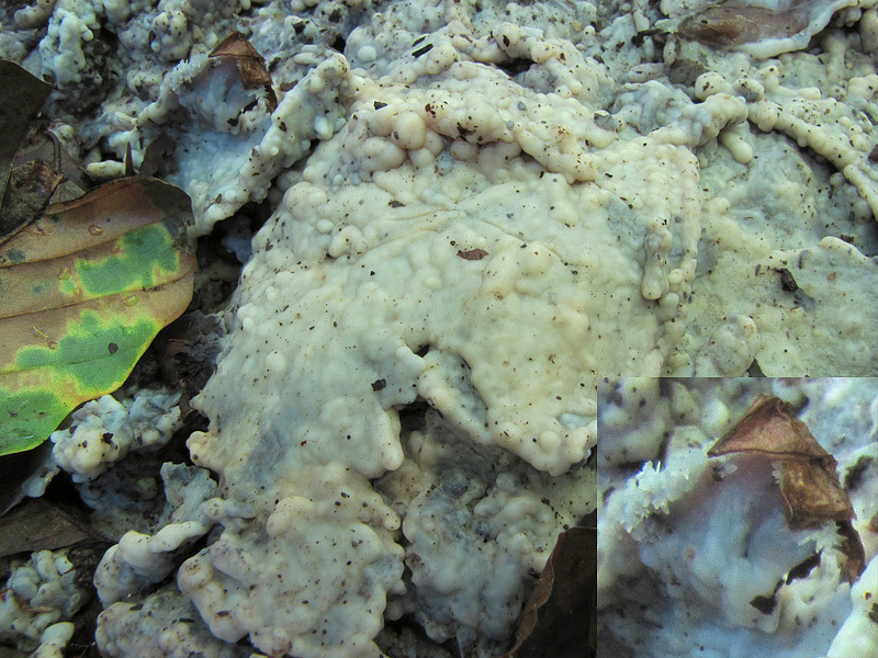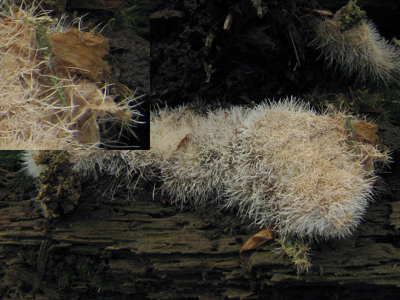 Beim Schmöckern mit Euren Anregungen bin ich auf eine dänische Seite gestoßen, welche eine Verwechslungsmöglichkeit von Ozonium und Pterula multifida beschreibt. Beim Vergleich der beiden Arten fällt mir auf, dass die "Nadeln" vom Ozonium ungerichtet sind, während die von Pterula tendenziell senkrecht stehen. Ein Geruch ist mir nicht aufgefallen. Beides würde m. E. für Ozonium sprechen. Evtl. habe ich mich mit Nadelbaum getäuscht, der Stamm war schon stark zersetzt.