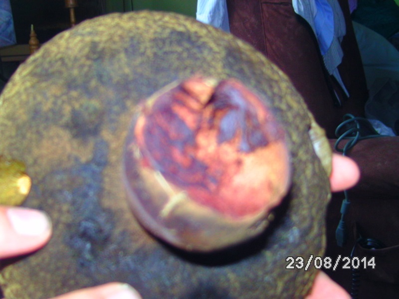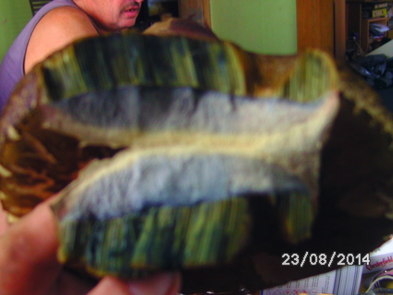 Das Fleisch des Stieles war beim durchbrechen rötlich,wurde dann an der Bruchstelle ebenfalls dunkel und feucht.