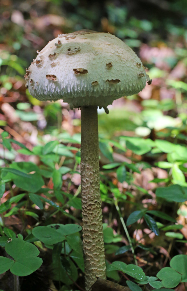 4) ist der Spitzschuppige Stachelschirmling (Lepiota aspera)