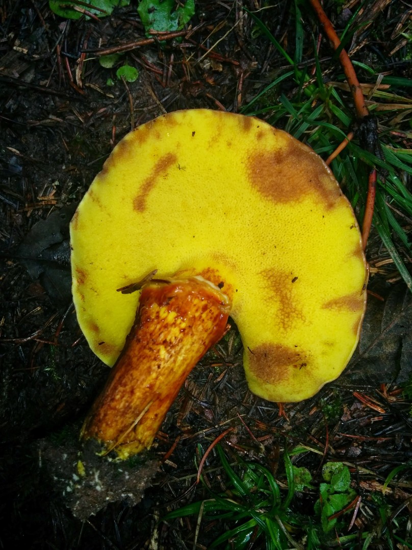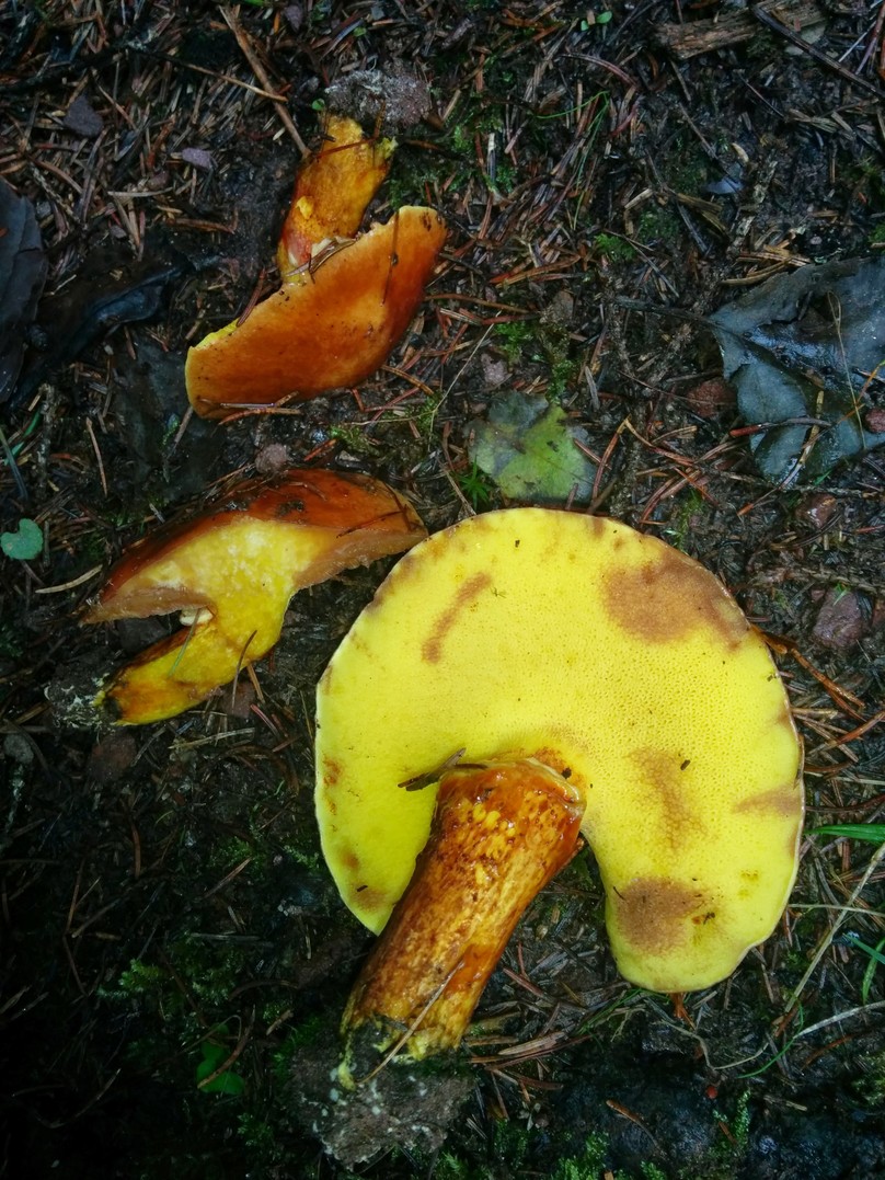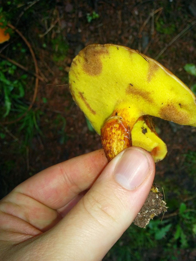 So, nachdem ihr mir neulich so toll geholfen habt würde ich mich heute wider über eure Hilfe freuen. Ich war heute eigentlich nur so im Wald unterwegs hab aber einige Eierschwammerl (Pfifferlinge) mitgenommen, dabei ist mir auch dieser gelbliche Röhrenpilz aufgefallen, da ich ihn nicht kenne würde ich mich über eine Bestimmung freuen. Ich hab nicht vor ihn zu essen, da ich mir nicht sicher bin und habe ihn deshalb im Wald gelassen.