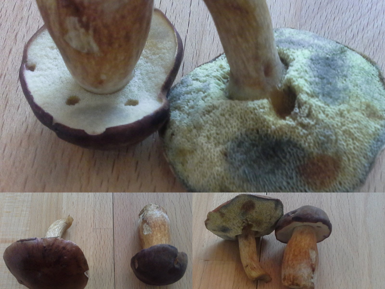 Ja, exakt diese sind es: "Blauen fast nicht, auch bei nassem Wetter samtig-trockene Huthaut, festfleischig und kompakt". "Abweichler" im Sinne von Minderheit sind es bei mir nicht. Sie machen gut die Hälfte meiner Funde aus, aber wegen dieser Eigenschaften bin ich da gar nicht traurig drum ![]()