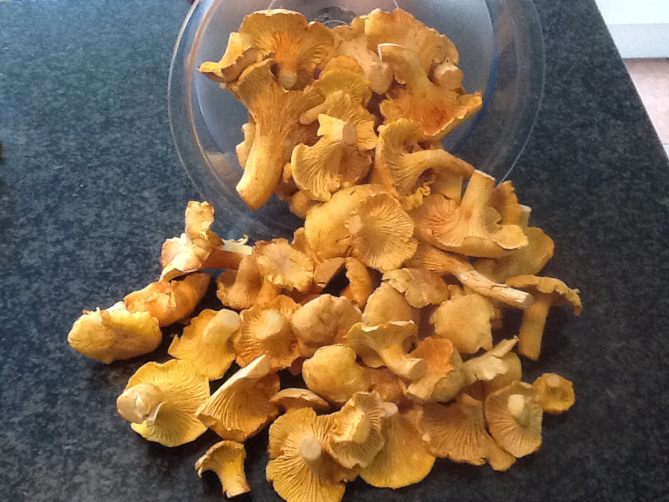 Ich bin überrascht, gleich 600g Pfifferlinge bei meinem ersten Mal gefunden zu haben! Und das gleich im Wald hinter unserem Haus, in dem ich seit 12Jahren ständig spazieren gehe.