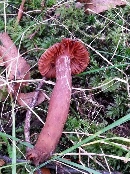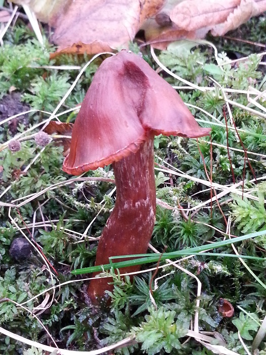 Also an einen Lacktrichterling hatte ich zuerst auch gedacht. Den Gedanken aber sofort verworfen. Das weiße am Stiel paßt nicht so.