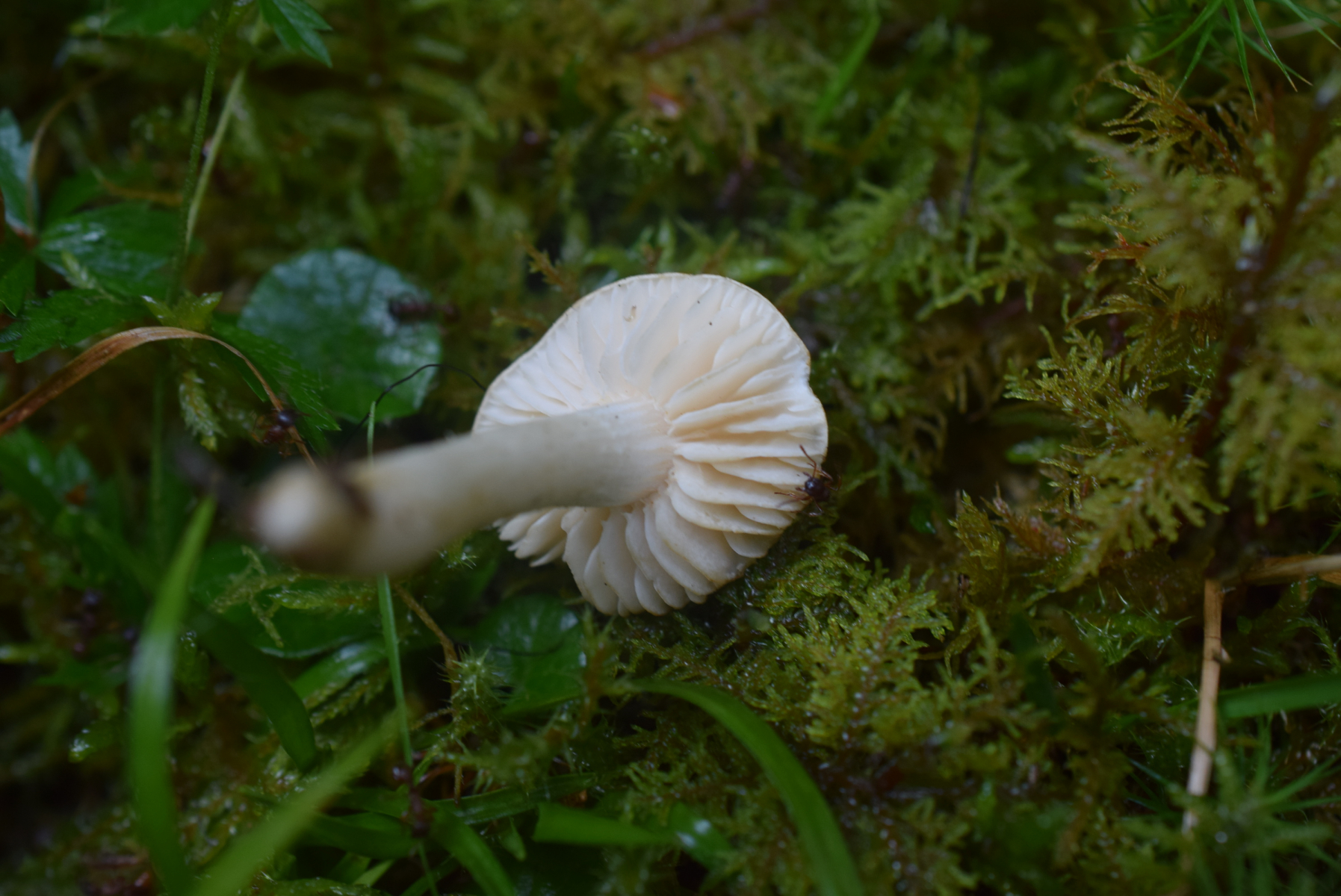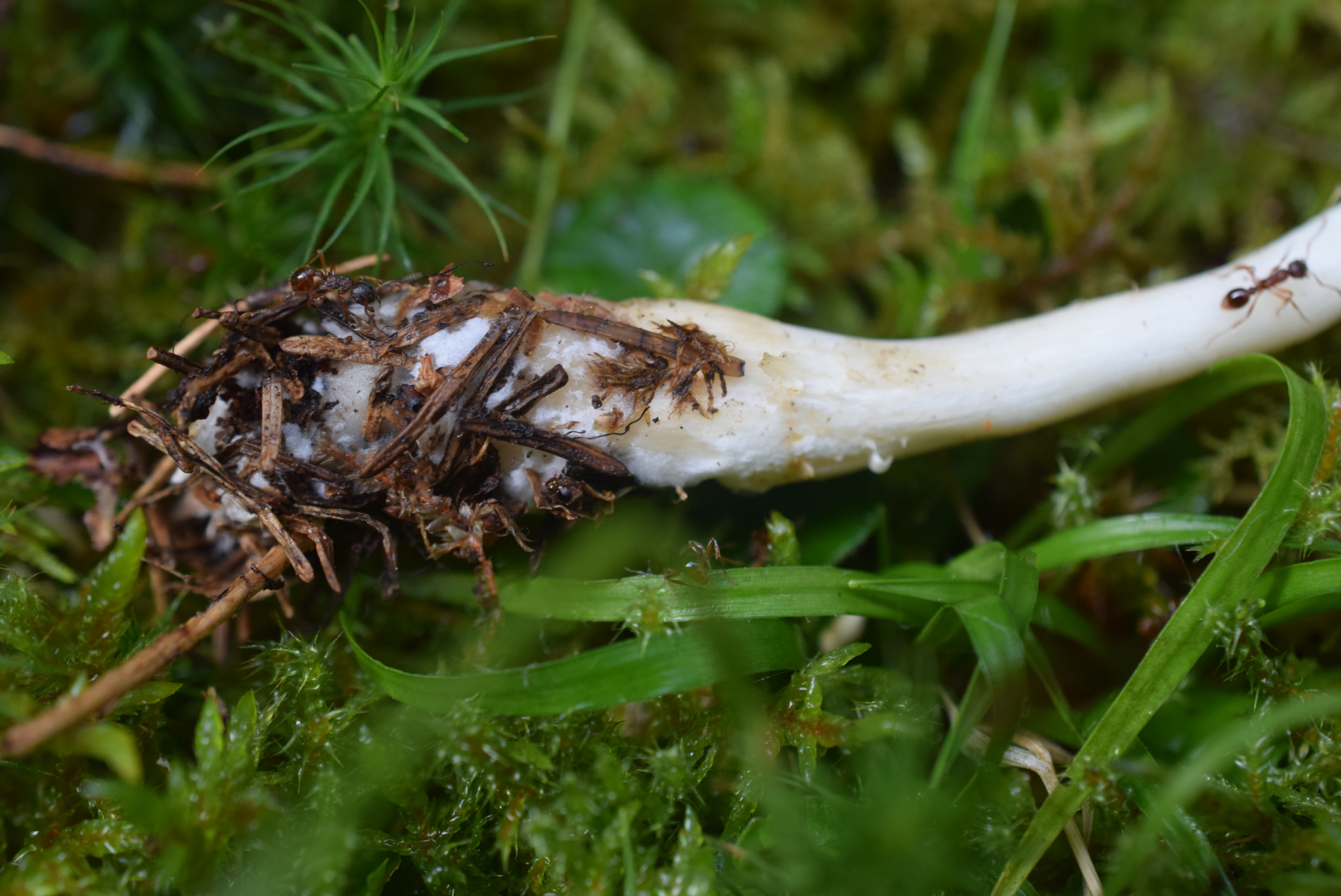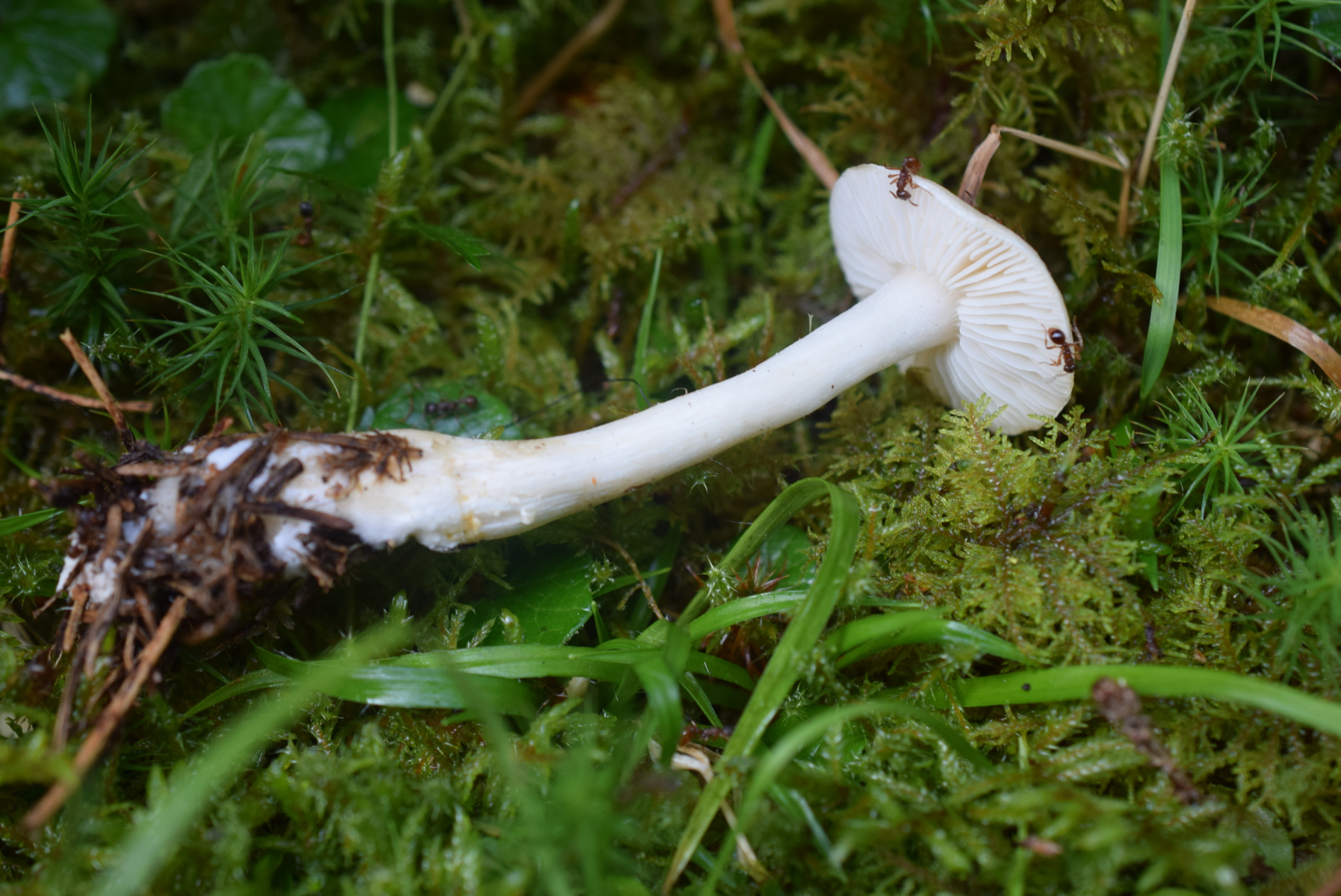 KOH 20% Positiv , siehe Bilder . Mehrere Exemplaren zerstreut ( ca 10 Fruchtkörper ) alle weiße Farbe .