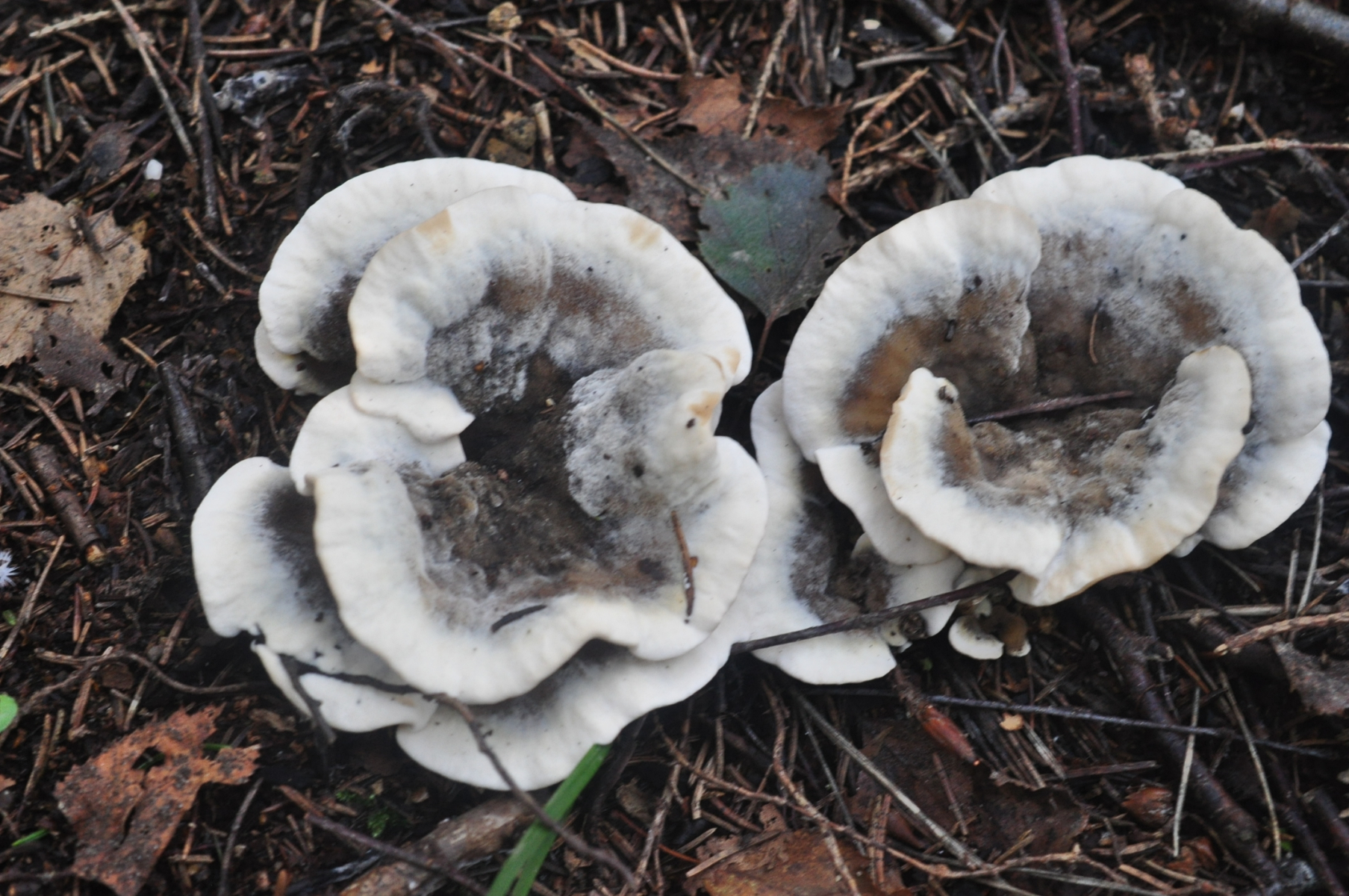 Sporenpulver weis , Hut nach Pflücken (nach paar Stunde) von hellgelb Farbe hat an Ockergelb verfärbt