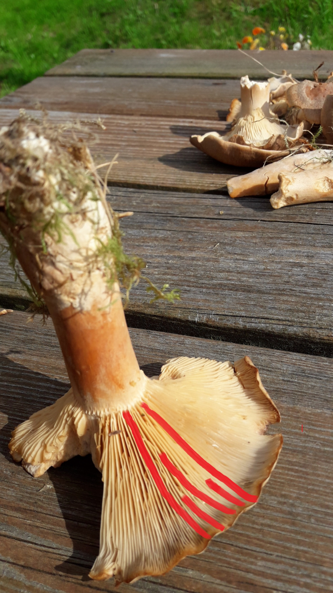 Lamellen von Spackbackis Pilz und von R. gemina sind gleiche Form aber auch von L. helvus ,