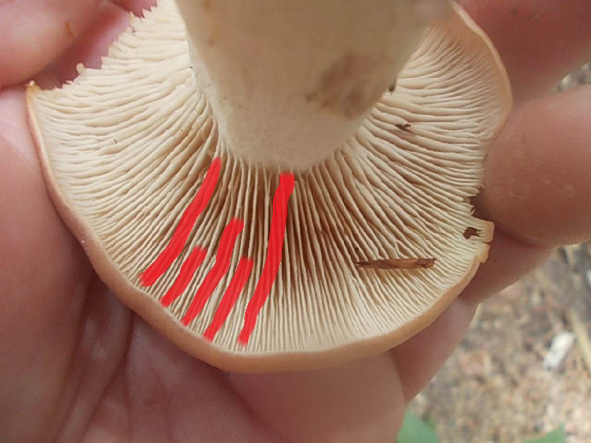 R. gemina und L. helvus beide haben gleiche Lamellenstruktur eine Lange - kurze - Mittellange - kurze und Lange (Herablaufend - Meist herablaufend)