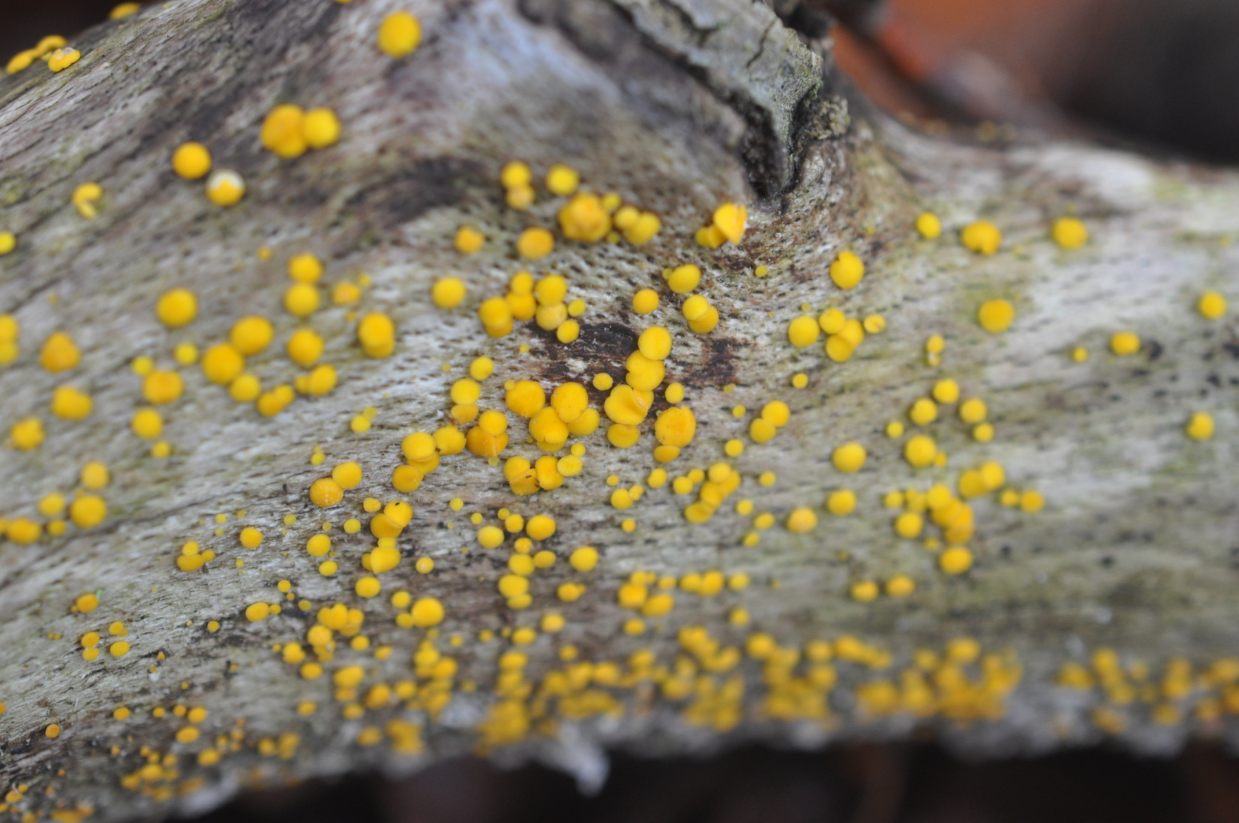 An Laubaumast , wahrscheinlich Bisporella citrina