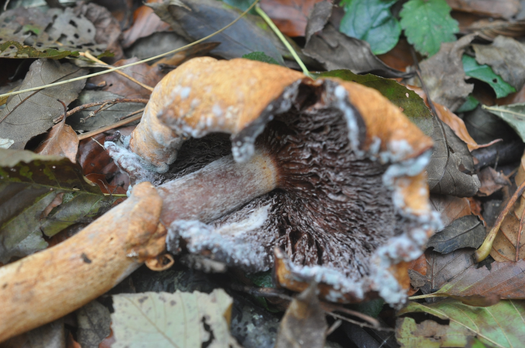 1. Ein Pilz mit "Silberne" Stiel . Zu alt für Bestimmung aber vielleicht jemand kent diese komische Silberne Stiel .