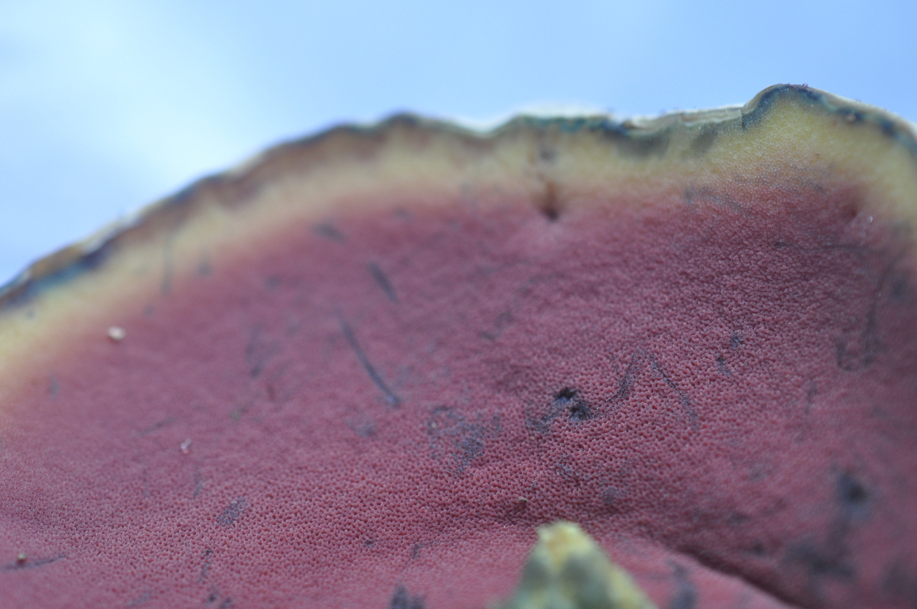 Ich habe mit meine Finger Blaufarbe von Hexen an Anhängselröhrling übertragen , sieche an Bild 2 meine Fingerabdruck an Anhängselröhrling Röhren und Bild 3 auch an Stiel