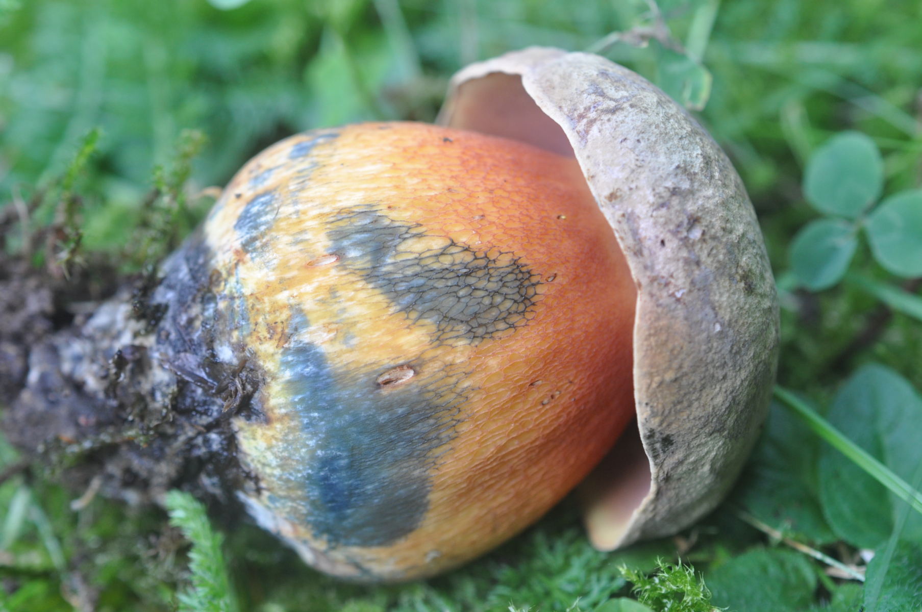An Stielbasis ich habe mit der Messer Stielhaut entfernt und unten Huthaut Blau - Grünlich Verfärbung entdeckt (das passt besonderes gut an Holopus)