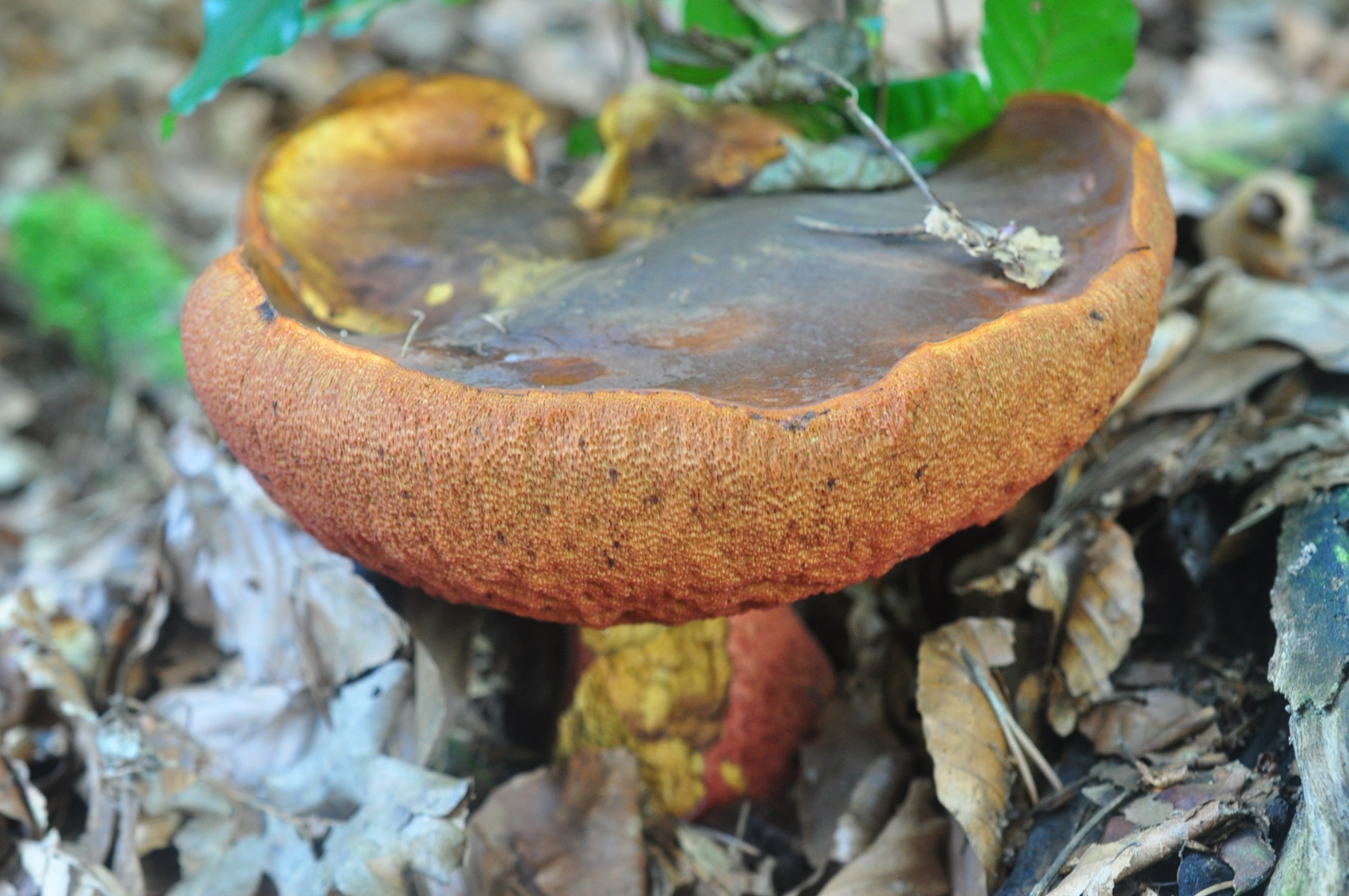 Meine erste Idee auch war Holopus . Letztes Jahr ich habe 2 Beitrage über meine 2 verschiedene vermutliche Holopus geschrieben , aber beide schauen etwas anders als diese neue Fund . Ich habe noch ein Leccinum am gleiche Tag gefunden nur 200 Meter weit . Ich stelle auch diese zweite Fund später in diese Beitrag .