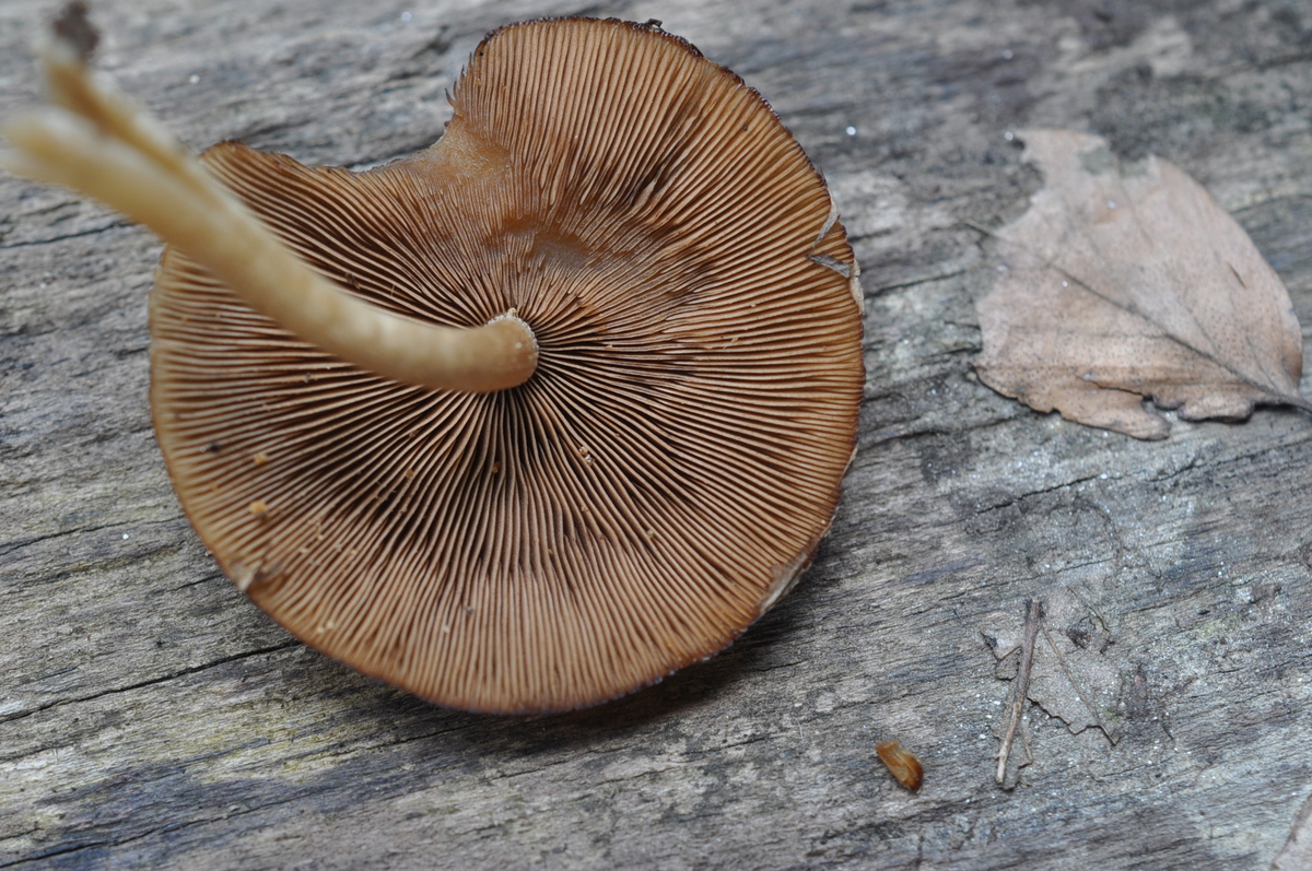 Ein vor 6 tage wegen Fotografieren geschnittene Pilzstück welche ich habe an Fundort gelassen ist von untere Seite verschimmelt