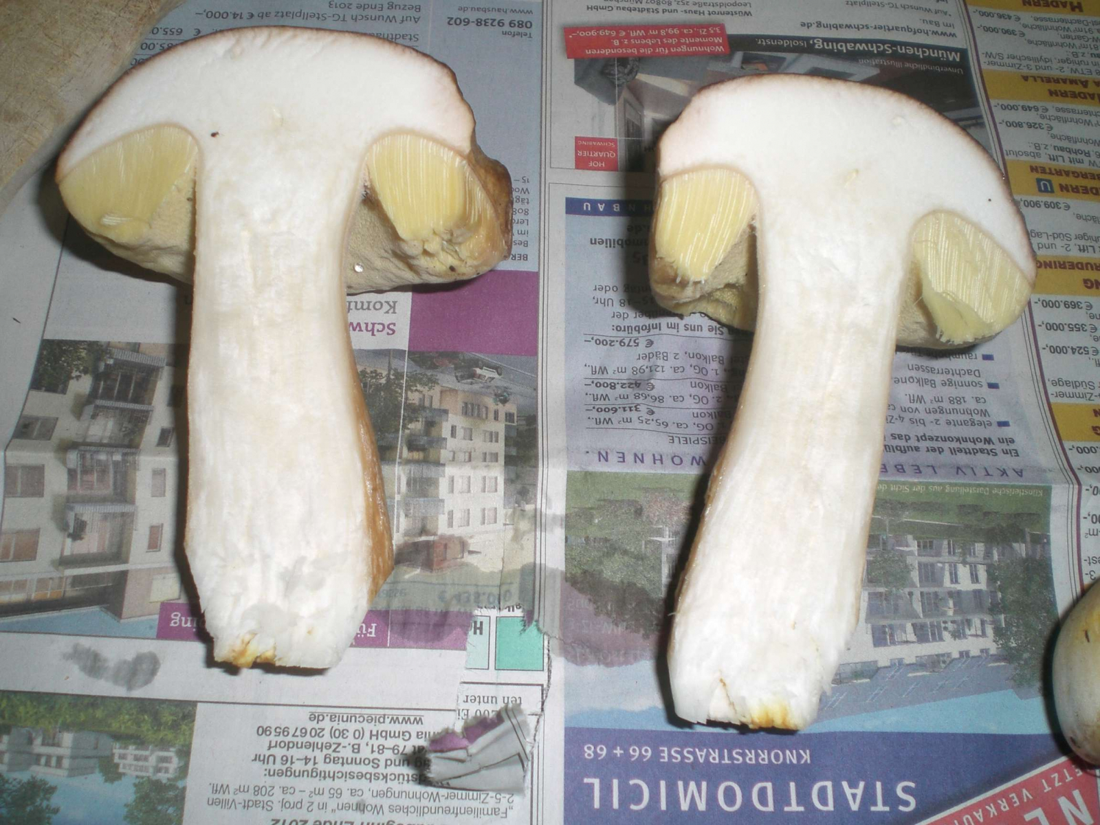 Die Pilze 1 sind generell fester, kleiner (jünger?) und dunkler als die Pilze 2. Sie scheinen im Gegensatz zu den Röhren der Sorte 2 auf Druck kaum zu blauen. Alle Pilze sind aus dem Nadelwald mit primär Fichten und Kiefern.