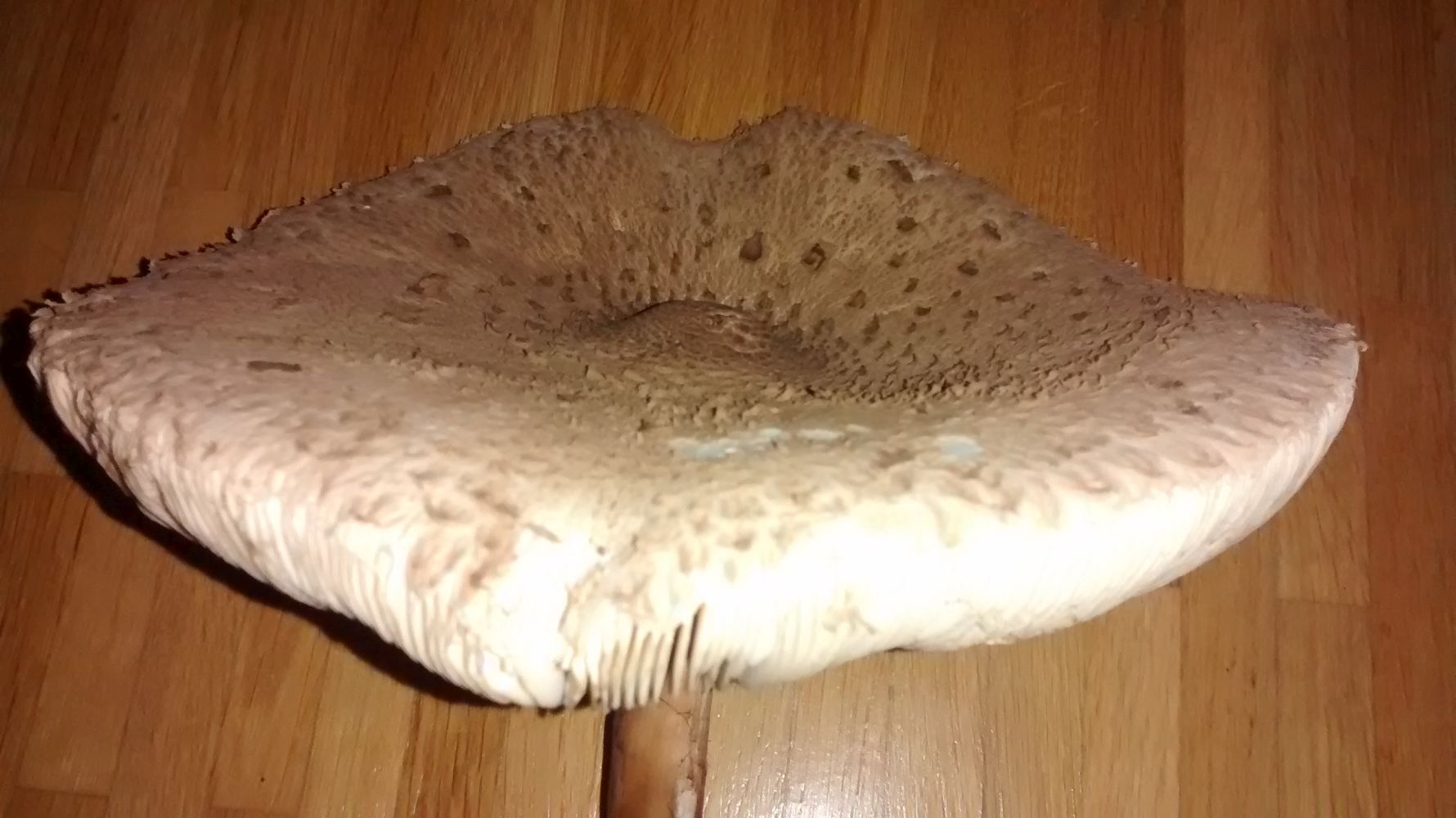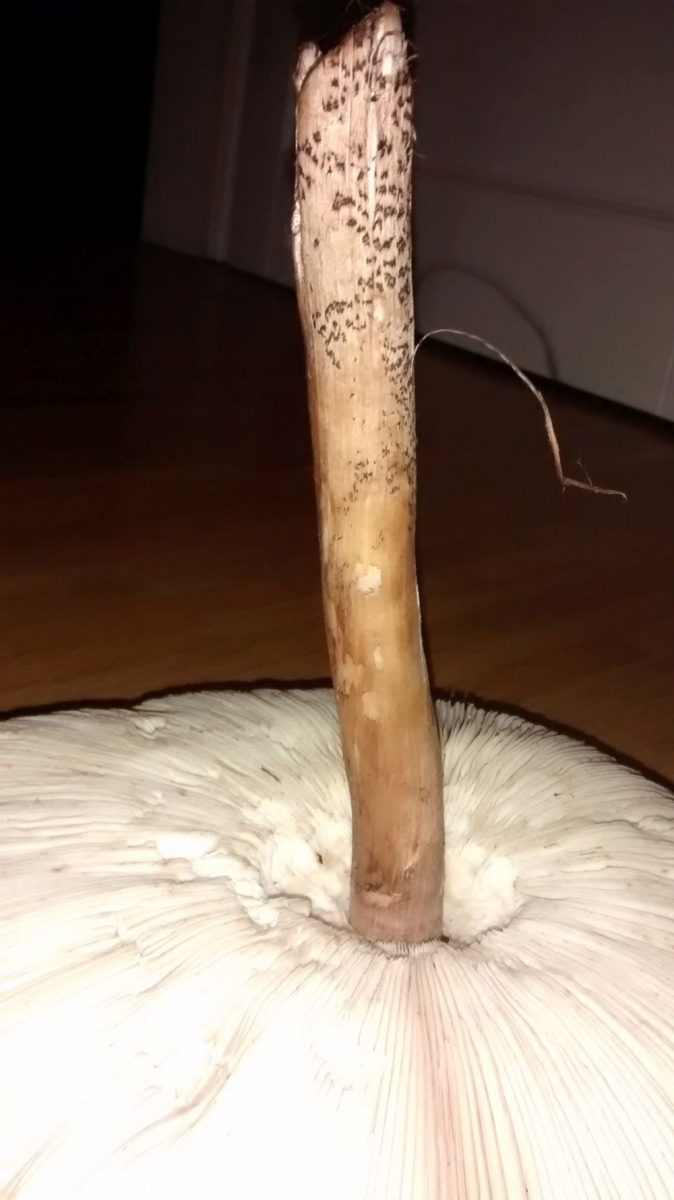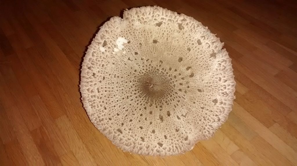 Den Pilz auf den Fotos fand ich heute in einem Mischwald. Ich halte ihn für einen Riesenschirmling, aber ihm fehlt der verschiebbare Ring, der nach den Beschreibungen für ihn typisch ist - deswegen bin ich misstrauisch.