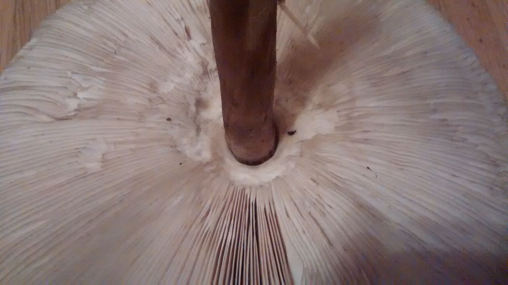 Auffallend ist die Größe (Schirmdurchmesser 24 cm) und ein ausgeprägter nussiger Geruch.
