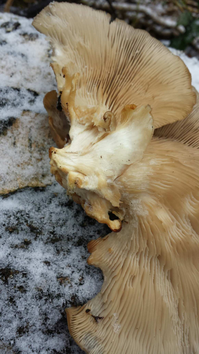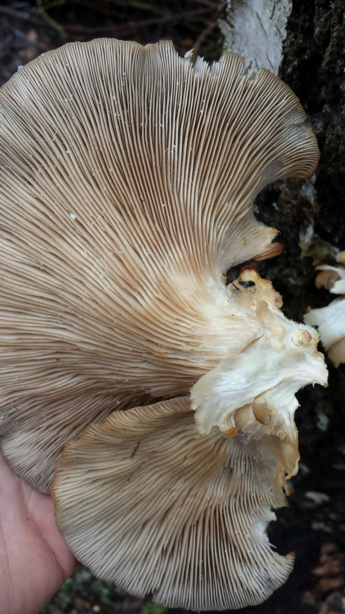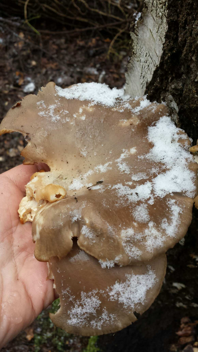 Würde behaupten hier den Winterausternseitling gefunden zu haben. An einer abgebrochenen Birke, geruchloser, weicher Fruchtkörper.